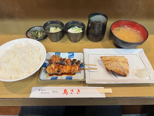 私がよき注文するのはこちらの「サバの文化干しと焼き鳥のセット定食」です
